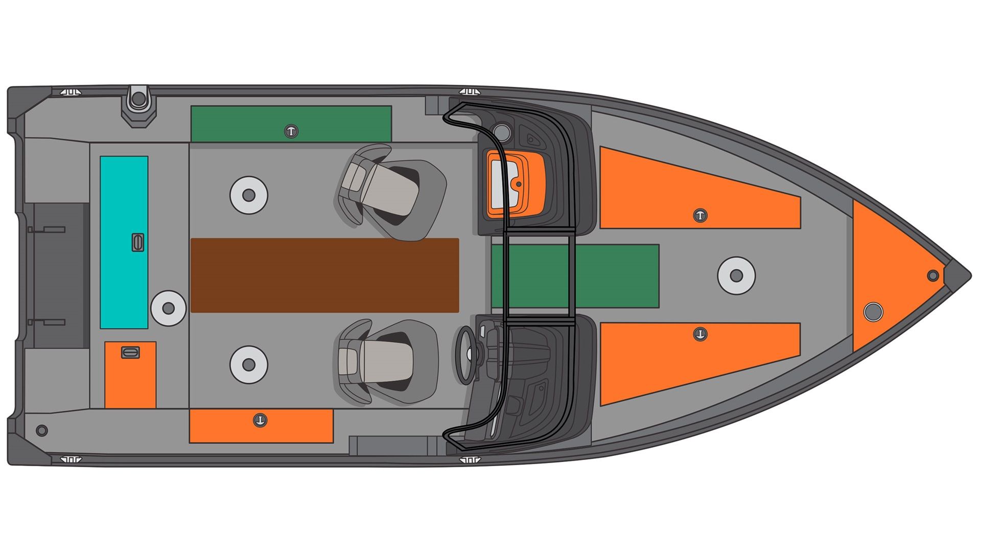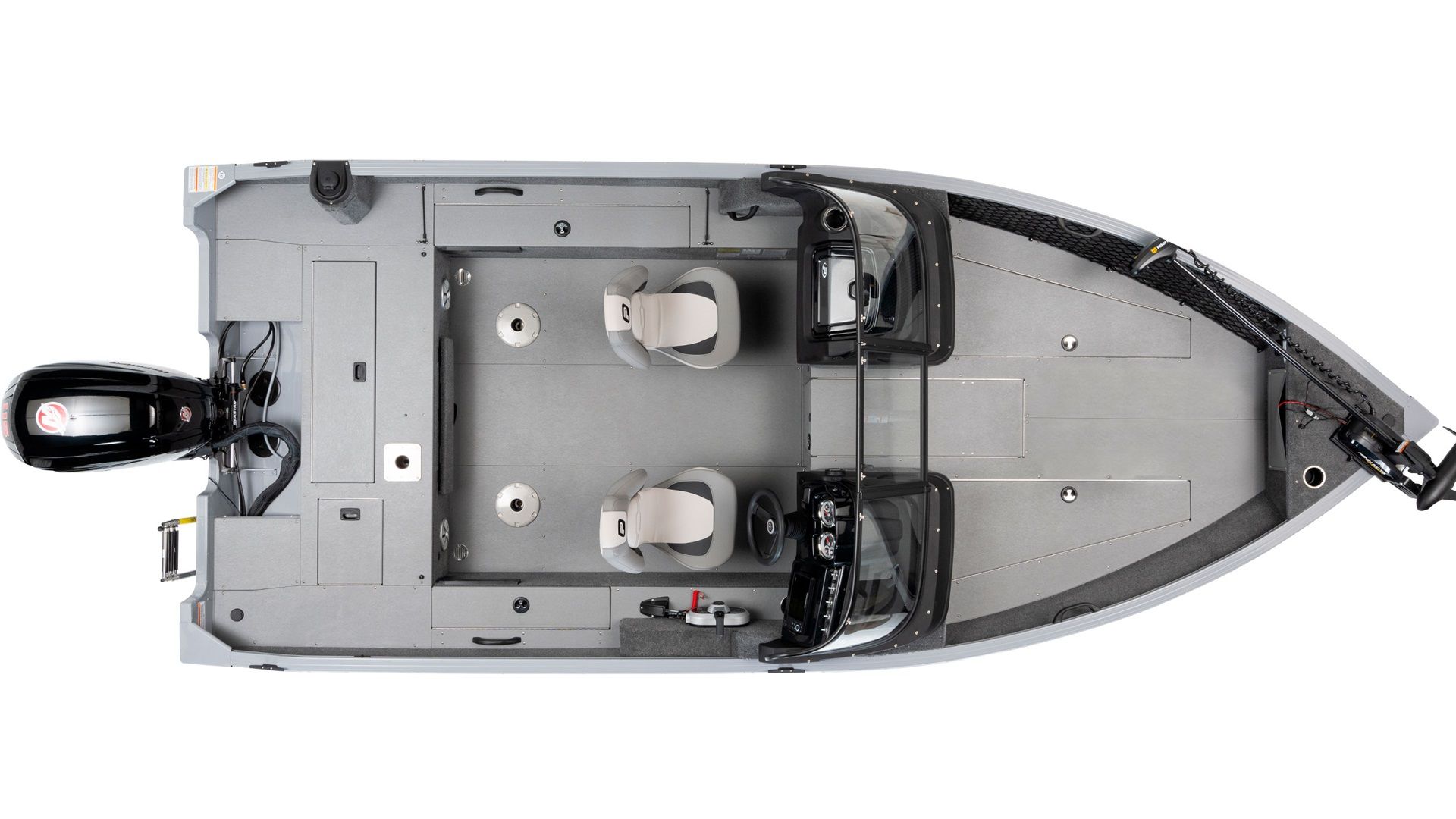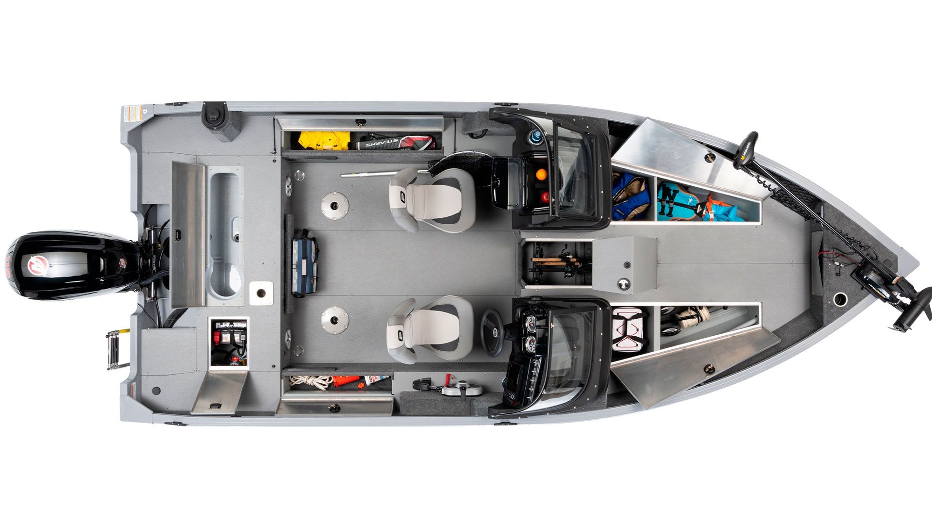 Dominating the bow is the raised casting platform, an angler’s strategic point equipped with ample storage, lockable rod organizer for ten rods, and innovative air flow grids ensuring ventilation for stored gear. Positioned astern, another raised platform, enshrines a SportFlo electric-filled aerated livewell and battery storage compartment, creating a sanctuary for both your catch and equipment.