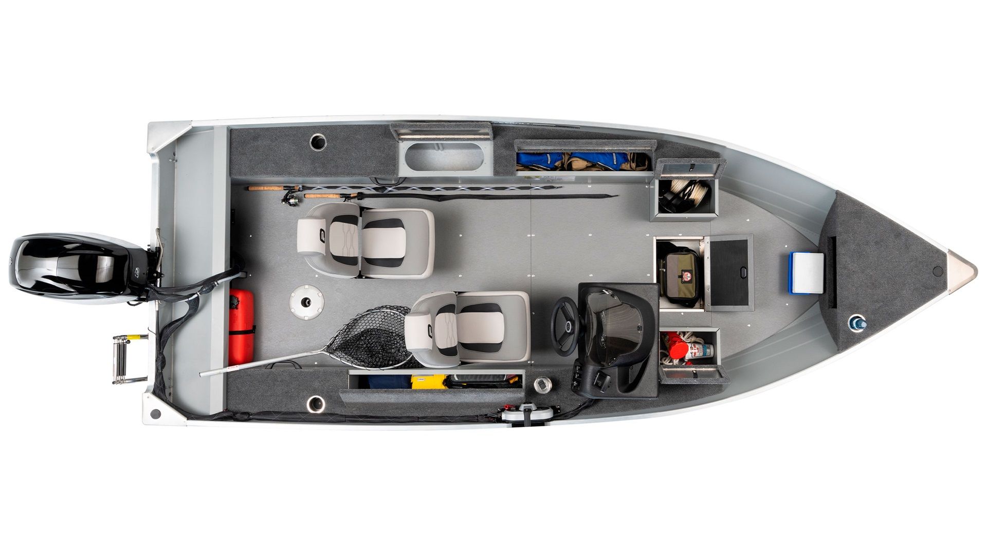 With the Resorter 160 SC, you benefit from a generous 7-foot rod storage compartment, ensuring your gear is organized and within reach. The convenience continues with four strategically placed cup holders, perfect for those long days on the water where refreshment is a must.