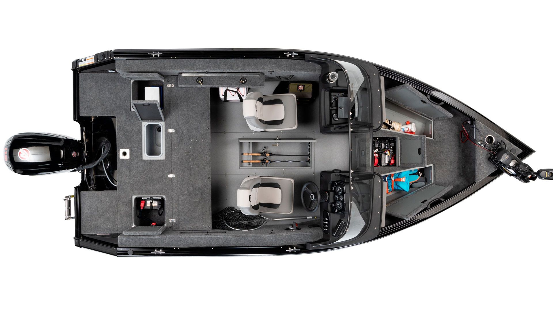 Focusing on the angler's experience, the Sport 175 MAX includes a bow raised casting platform, equipped with large storage compartments and a deep cycle battery storage. The aft section doesn't disappoint either, housing a rear flip-up full-width seat that reveals a spacious area with a built-in electric-filled aerated livewell, ensuring your catch stays fresh.