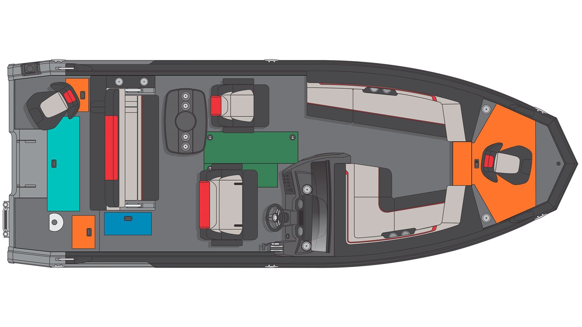 Decked with pressure-treated wood beneath a dark grey vinyl floor covering, the Ventura 230 RL boasts an expansive layout. Luxuriate on the chaise lounge or enjoy the versatile RL design seating module that allows for various configurations, perfect for sunbathing or socializing. With rotocast bucket seats and copious under-seat storage, comfort and convenience sail in unison.