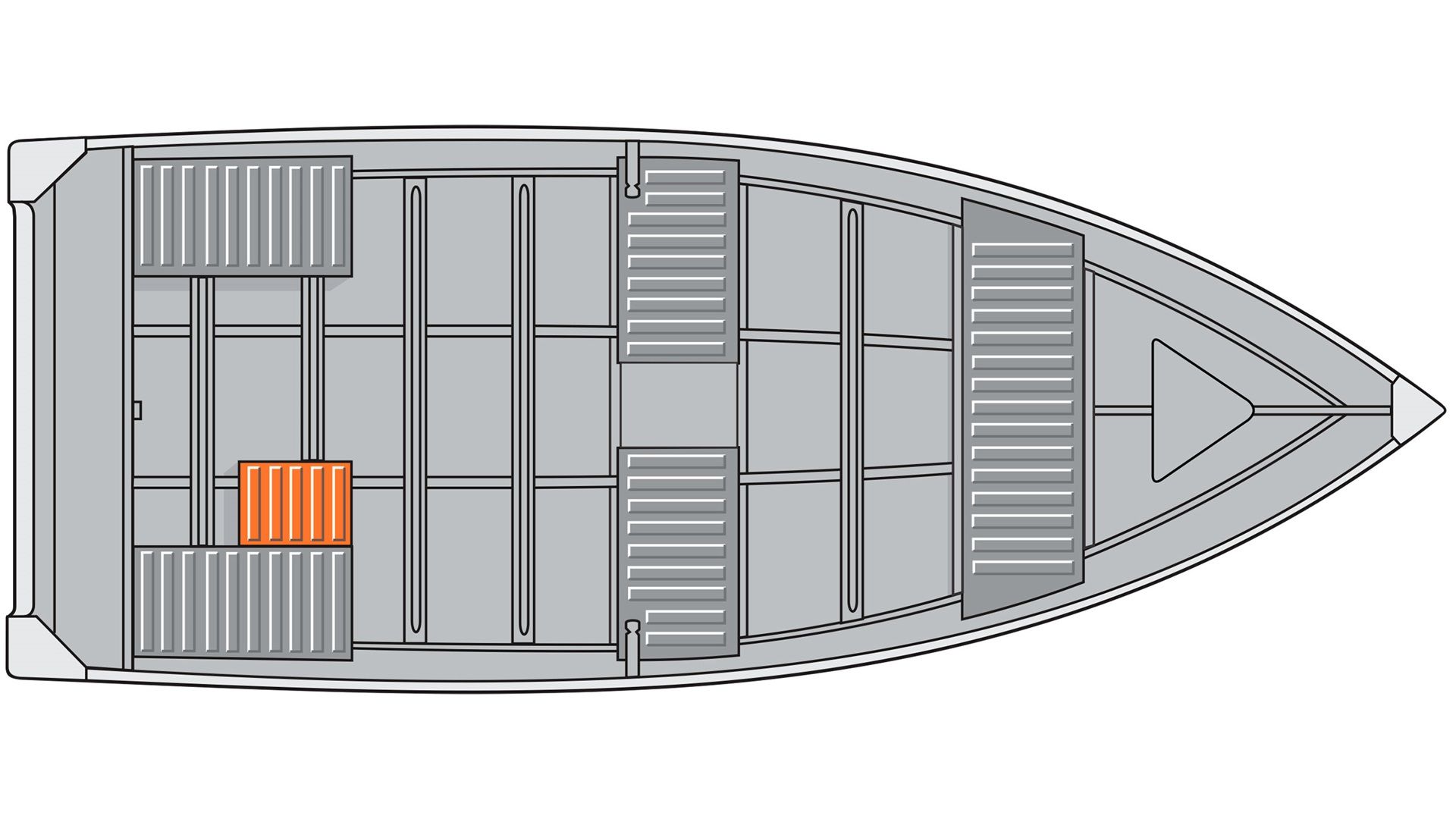 Ergonomically placed, the heavy-duty tubular seat to gunnel braces and durable ribbed polyethylene seat coverings induce comfort during prolonged outings. A split center seat, parallel stern seats, a bulkhead center seat, and a bow bench seat are intelligently allocated to exploit every inch of the boat’s functionality.